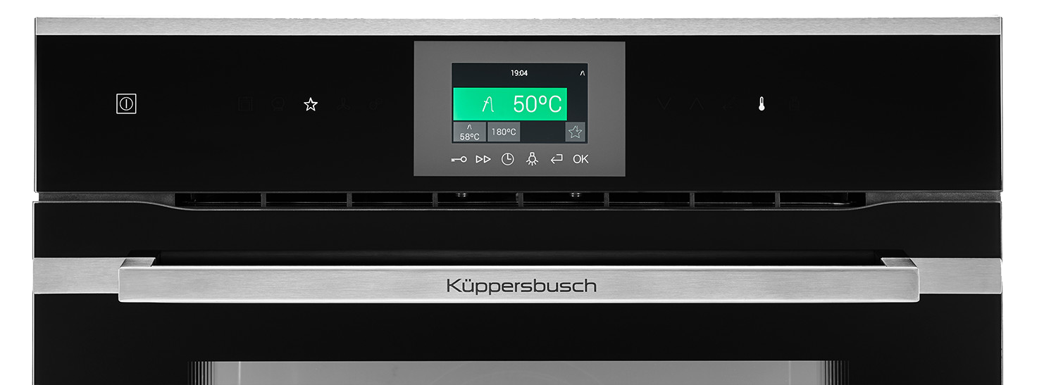 Die Küppersbusch K-SERIES.7 besticht durch das pure schwarze Design, intuitiver Menüführung und erlaubt die symmetrische Kombination aller Geräte dieser Serie in horizontaler und vertikaler Anordnung.