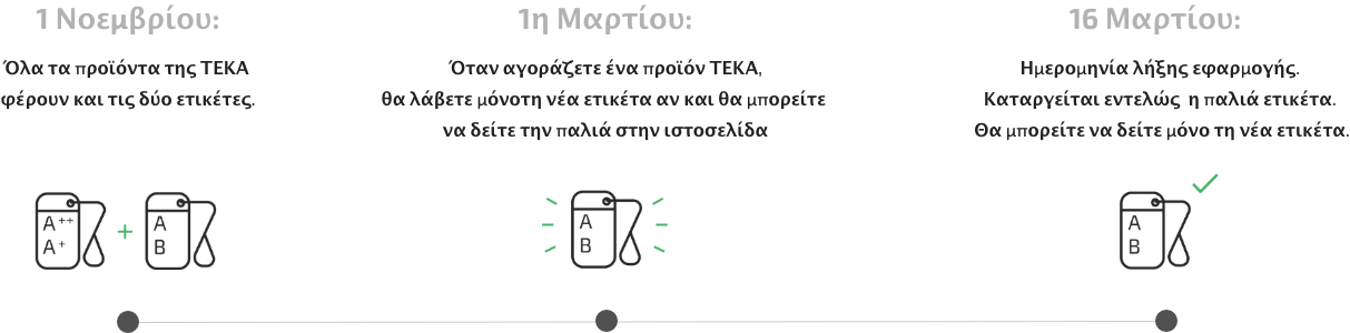 Όταν αγοράζετε ένα προϊόν ΤΕΚΑ, θα λάβετε μόνο τη νέα ετικέτα αν και θα μπορείτε να δείτε την παλιά στην ιστοσελίδα.