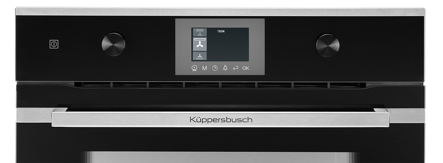 Le K-SERIES.7 de Küppersbusch impressionne par sa finition noire pure, sa navigation intuitive dans le menu et permet la combinaison symétrique de tous les appareils de cette série en disposition horizontale et verticale.