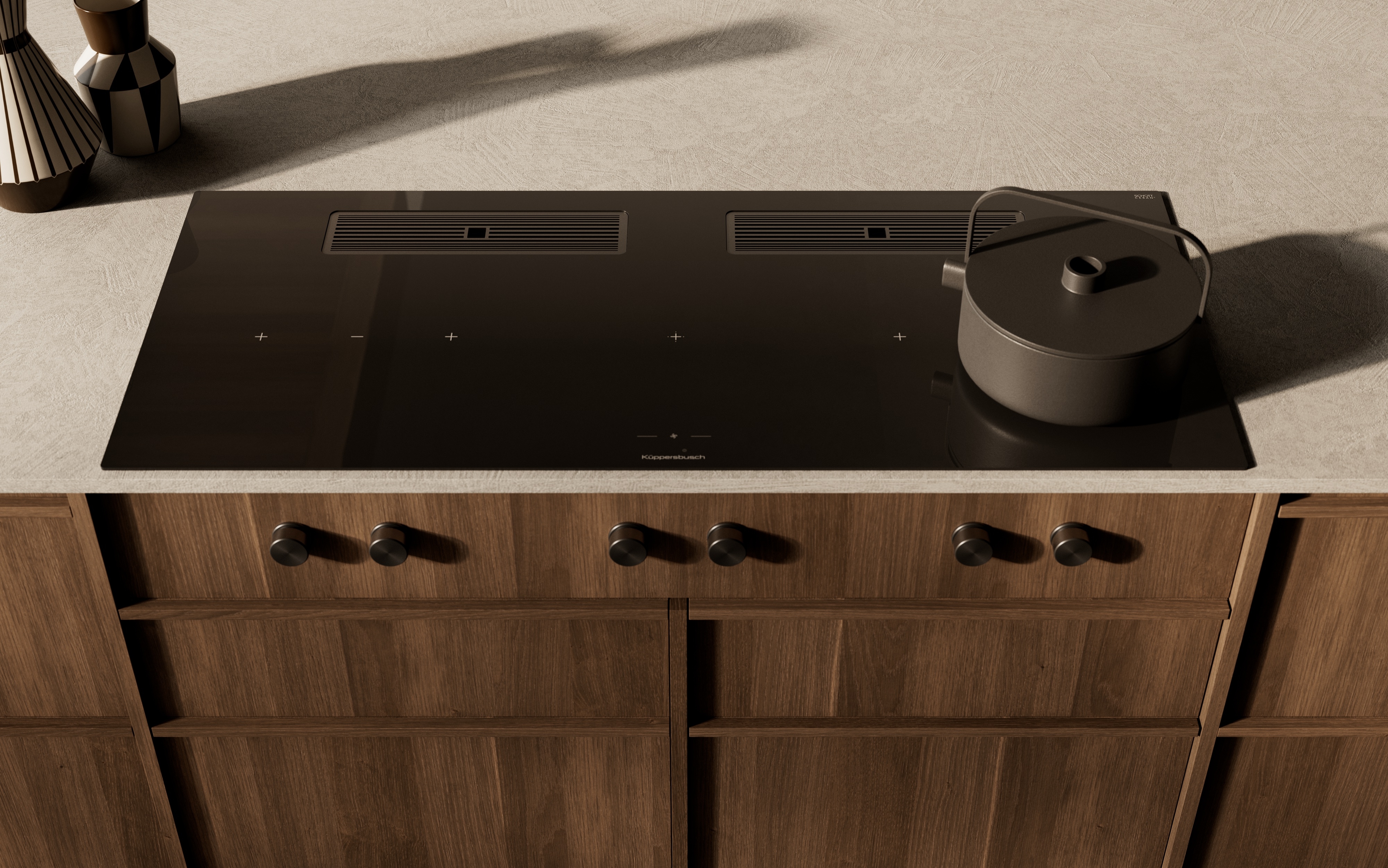 Flexibilité ultime pour les grands ustensiles de cuisine avec l'induction FlexCuisinez comme des pros grâce aux boutons rotatifs noirs de haute qualité