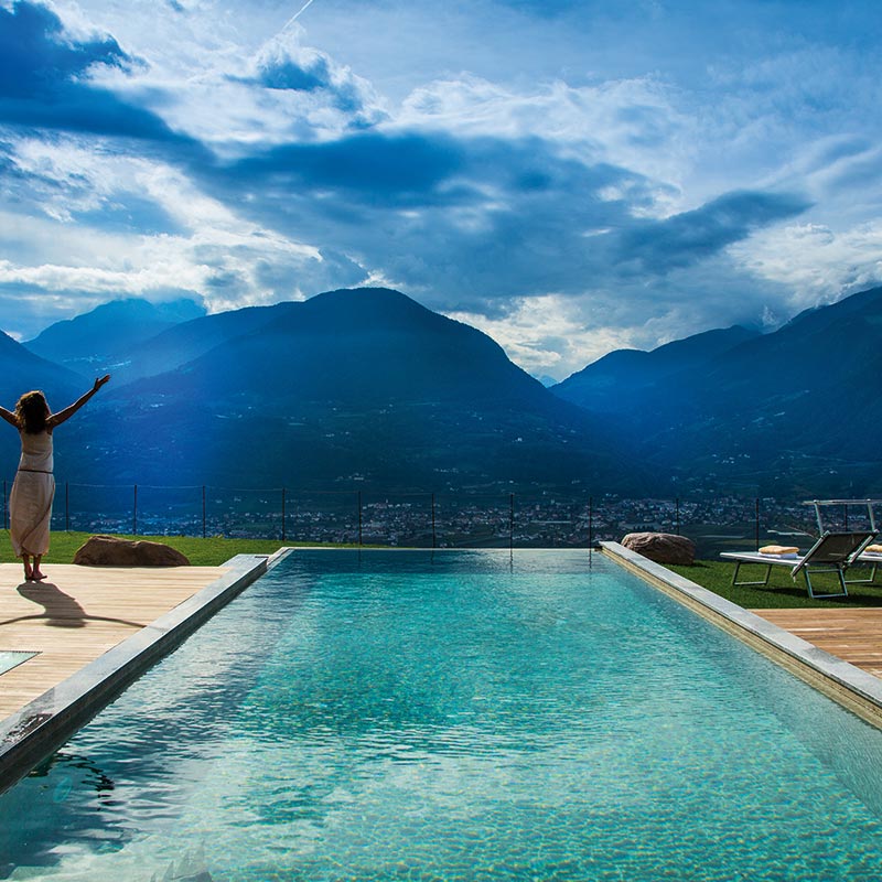 Nhưng không chỉ rượu vang phát triển mạnh ở đây, mà cả nhân loại. Điểm nổi bật của Eichenstein là nhà gỗ, nằm ở một vị trí yên bình độc đáo ở trung tâm của vườn nho. Nơi đây có đồ nội thất đầy phong cách, tầm nhìn ngoạn mục ra Thung lũng Merano Adige và những ngọn núi xung quanh, hồ bơi vô cực và sự yên bình, cảnh quan thoáng đãng và thiên nhiên đầy rượu vang! Một địa điểm cổ tích. Nhà gỗ sang trọng được trang bị độc quyền với các sản phẩm của Küppersbusch – và tất nhiên là cả tủ lạnh rượu.